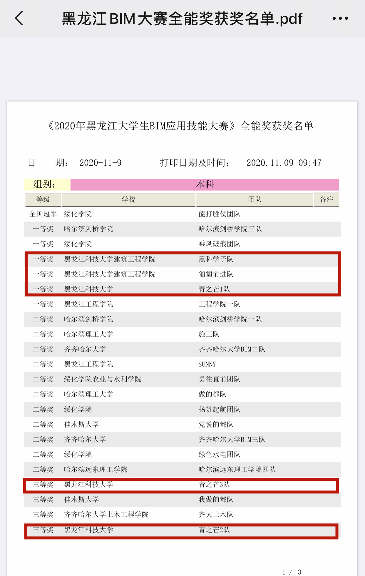 BIM应用技能大赛由黑龙江工程学院、深圳市斯维尔科技股份有限公司联合承办,来自省内27所高校的64支队伍参加了本次比赛。大赛采取云端比拼方式进行。建筑工程学院赵建、许珊珊等老师合作指导的工程管理等多专业协同参赛代表队分别荣获BIM应用技能大赛全能一等奖三项、三等奖两项;BIM工程算量与管理专项一等奖两项、二等奖两项、三等奖一项;荣获BIM设计与绿色建筑分析专项二等奖四项、三等奖一项。