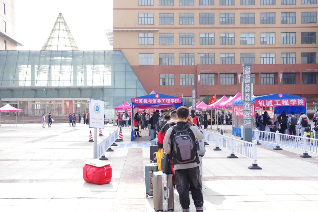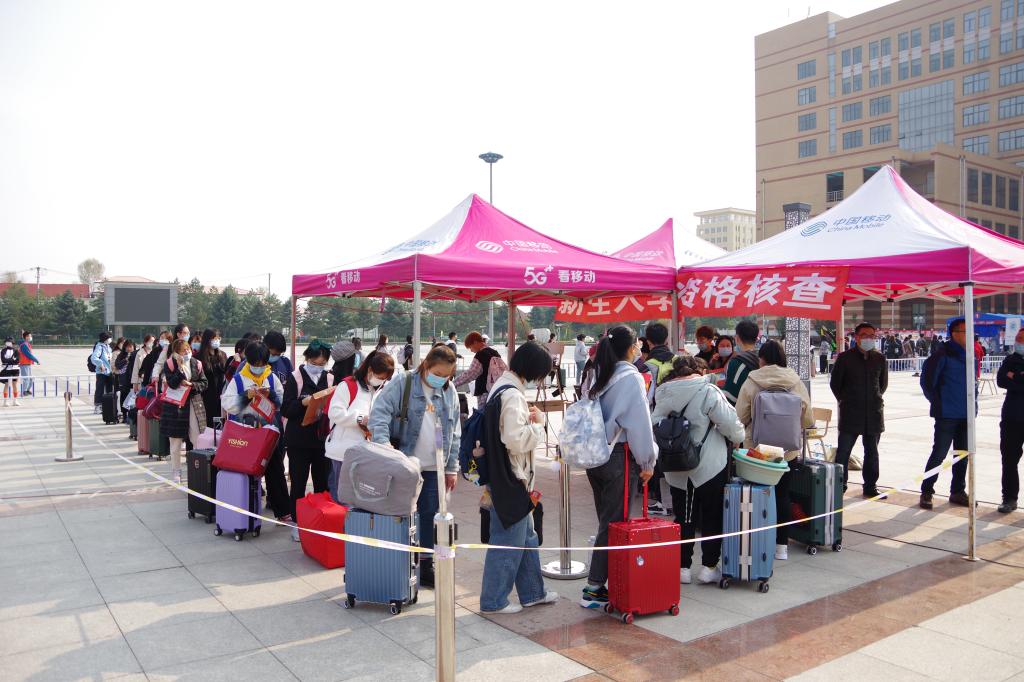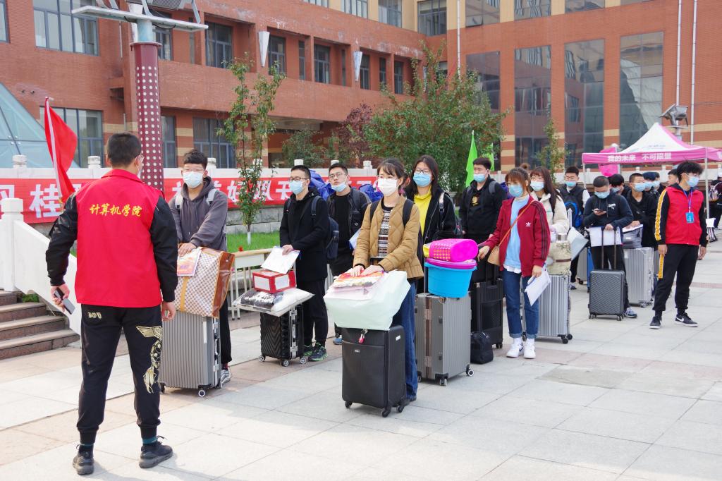 在校门口,迎新工作人员和志愿者们按照学校疫情防控工作部署,有序地指导新生填报健康信息,查看健康码、测量体温;在报到现场,迎新工作人员帮助新生搬运行李,引领新生有序地办理入学手续,解答新生的各种疑惑;在宿舍,志愿者帮助新生领取床上物品,指导生活须知。