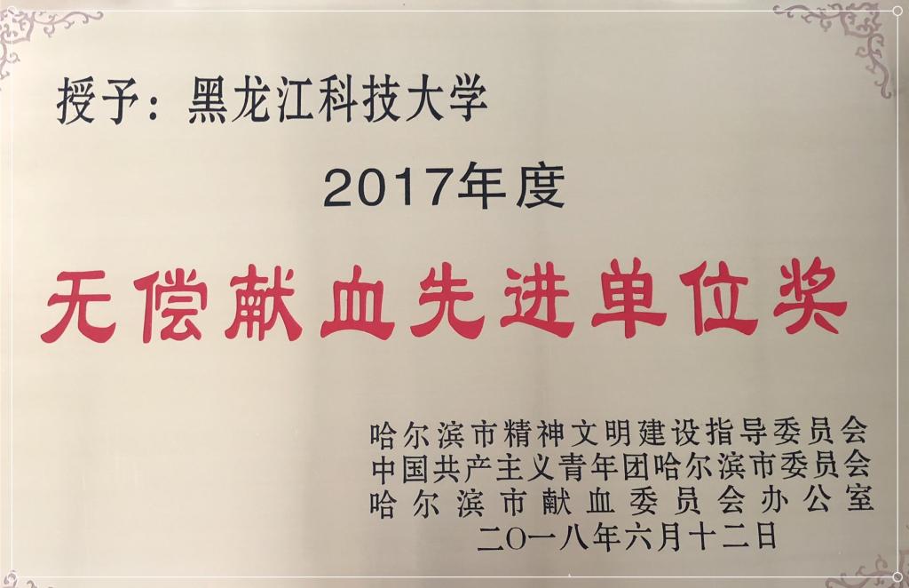 为纪念第十五个世界献血者日,表达对无偿献血者的敬意,由黑龙江省血液中心、哈尔滨市血液中心、共青团哈尔滨市委员会等单位主办的以“为他人着想、捐献热血、分享生命”为主题的庆祝第十五个“世界献血者日”表彰暨征集街头献血屋Logo启动仪式于6月14日在哈尔滨市防洪纪念塔举行。米兰(中国)一站式服务平台荣获2017年度“无偿献血先进单位”荣誉称号。