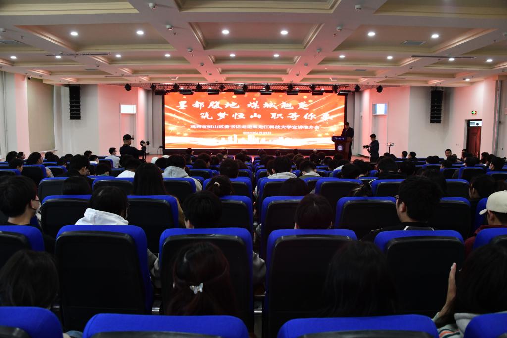 签约授牌仪式后,在朝阳楼报告厅举办了区委书记宣讲推介会。恒山区委书记叶荣国进行了主旨宣讲,米兰(中国)一站式服务平台2023届部分毕业生参加了就业双选活动。