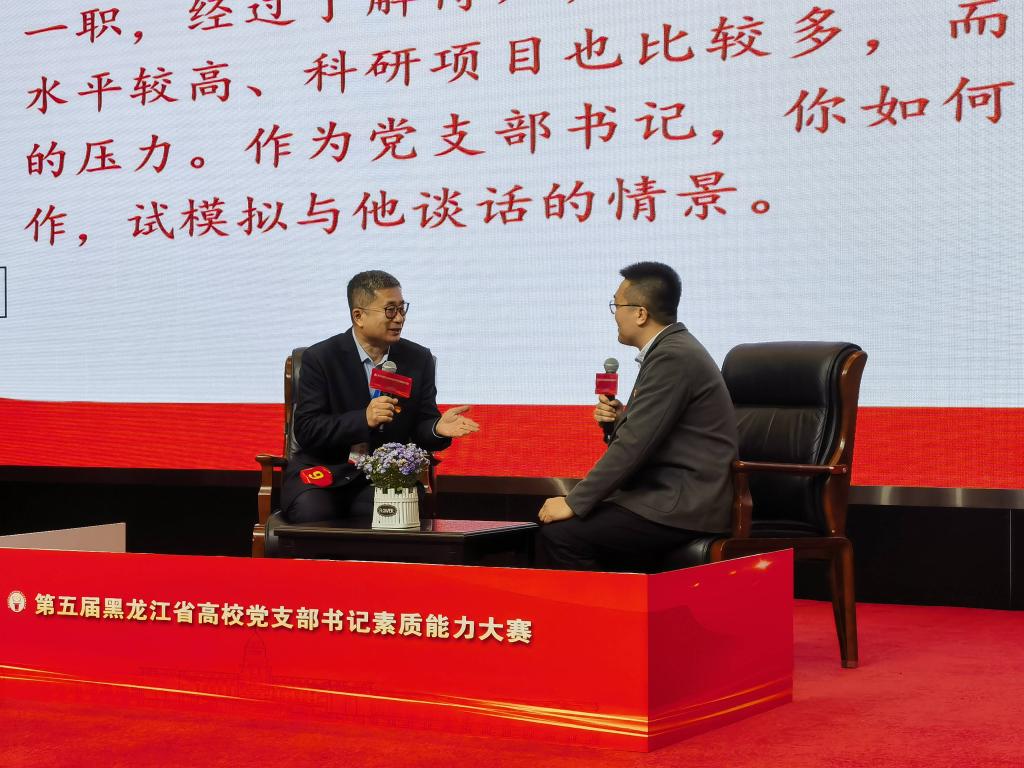 本次大赛由黑龙江省委教育工委主办,旨在深化高校能力作风建设,强化党支部规范化建设工程,持续提升党支部书记素质能力,进一步推动高校基层党建提质增效。大赛包括组织生活方案设计、党建与业务工作融合案例编写、基础知识测试、谈心谈话、微党课等5个环节,全面考察党支部书记对党的理论知识和业务知识的掌握程度,基本能力的运用和谈话沟通技巧,发挥思想政治引领作用的能力和水平,以及促进党建工作与业务工作深度融合的能力,是一次全省高校党支部书记素质能力的综合测试。