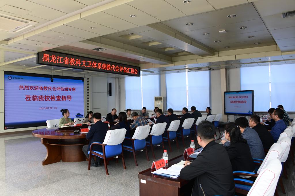 5月11日下午,按照省委教育工委、省教科文卫体工会《关于印发<黑龙江省本科院校教代会评估工作实施方案>的通知》要求,由哈尔滨商业大学工会常务副主席周鸿武为组长、哈尔滨金融学院工会副主席叶云红为副组长的省高校教代会评估组到校进行教代会评估检查。校党委副书记桑玉军,校党委常委、副校长张宝成,校工会常务副主席王建国、副主席苗慧,学校办公室、组织部、人事处等职能部门负责人,基层分工会主席代表和一线教师代表参加了汇报会。