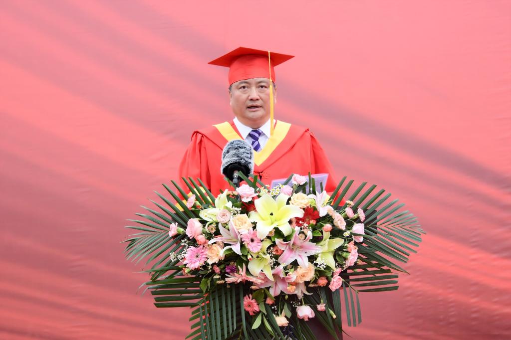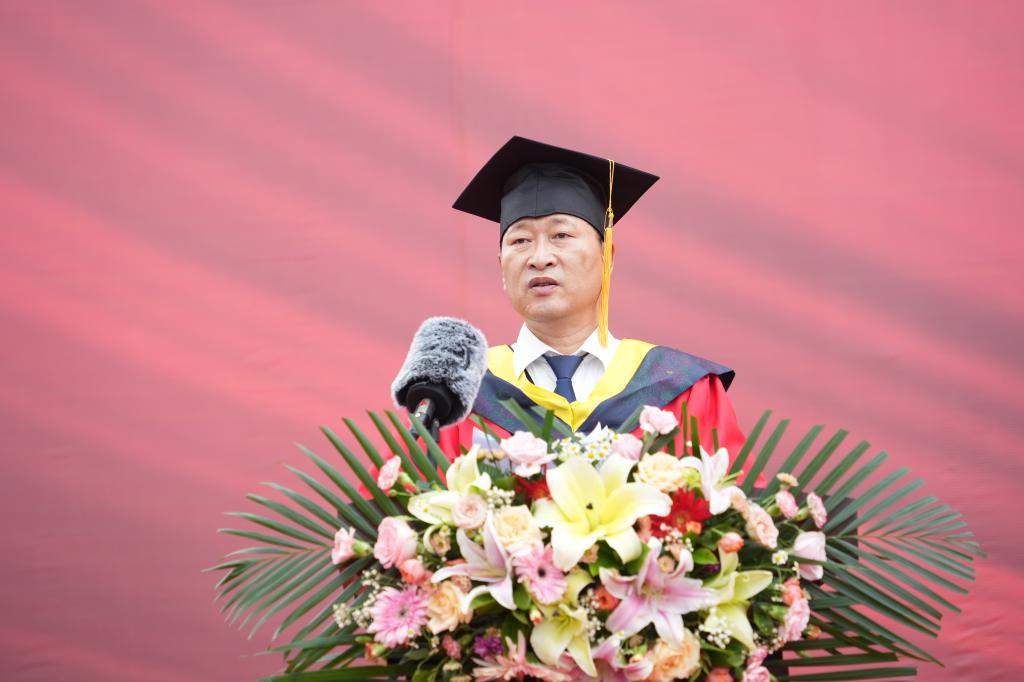 典礼上,校长孟上九作了精彩讲话。他代表全校师生员工向过去几年受疫情影响未能现场参加毕业典礼的毕业生校友代表致以最热烈的欢迎,向圆满完成学业的毕业生致以最热烈的祝贺。他寄语毕业生:作为国家发展的见证者、学校事业发展的参与者,要与时代“双向奔赴”、与米兰官网平台“双向奔赴”,要学会自找苦吃。