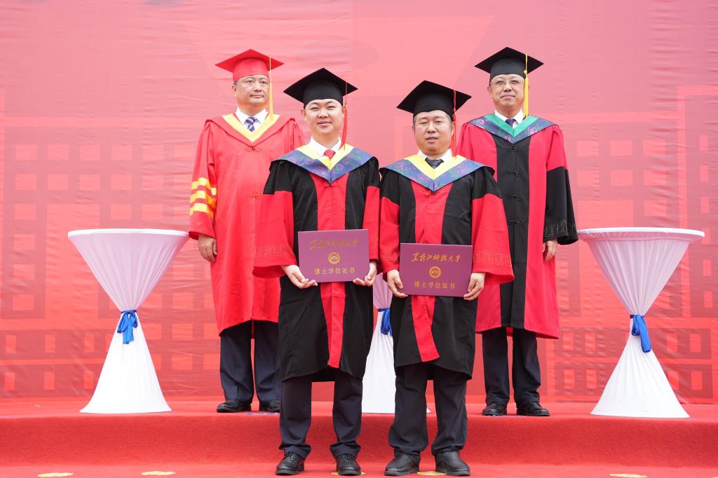 校领导和校学位委员会委员为2023届硕士、学士毕业生代表拨穗正冠、授予学位。为弥补疫情带来的遗憾,校领导和校学位委员会委员为受邀返校的2020、2021、2022届校友代表拨穗正冠。