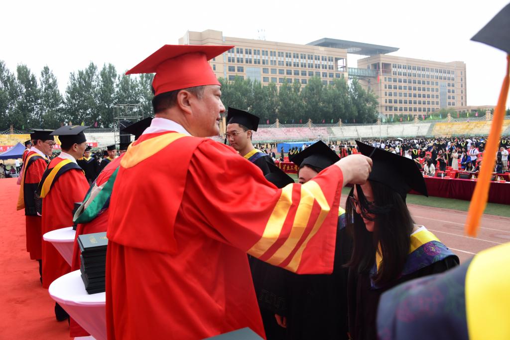 毕业典礼在庄严的国歌声中拉开帷幕,副校长张国华宣读关于准予2023届博士、硕士、本科学生毕业和授予学位的决定。副校长张宝成宣读了省级、校级“优秀毕业生”的表彰决定。校党委书记周宏力为优秀毕业生代表颁发荣誉证书。