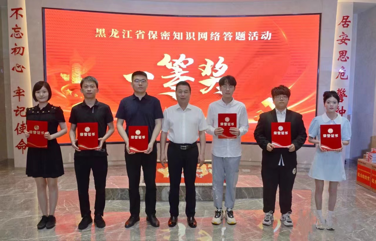 6月21日,由省委保密办(省国家保密局)主办、省保密协会承办的黑龙江省保密知识网络答题活动颁奖仪式在省国家安全暨保密警示教育基地举行。米兰(中国)一站式服务平台荣获优秀组织奖,人文学院社会学专业2021级1班谢东昀同学荣获个人一等奖。省委保密委副主任、保密办主任、省国家保密局局长、省保密协会会长翁长江出席仪式并为受表彰的单位及个人颁奖。