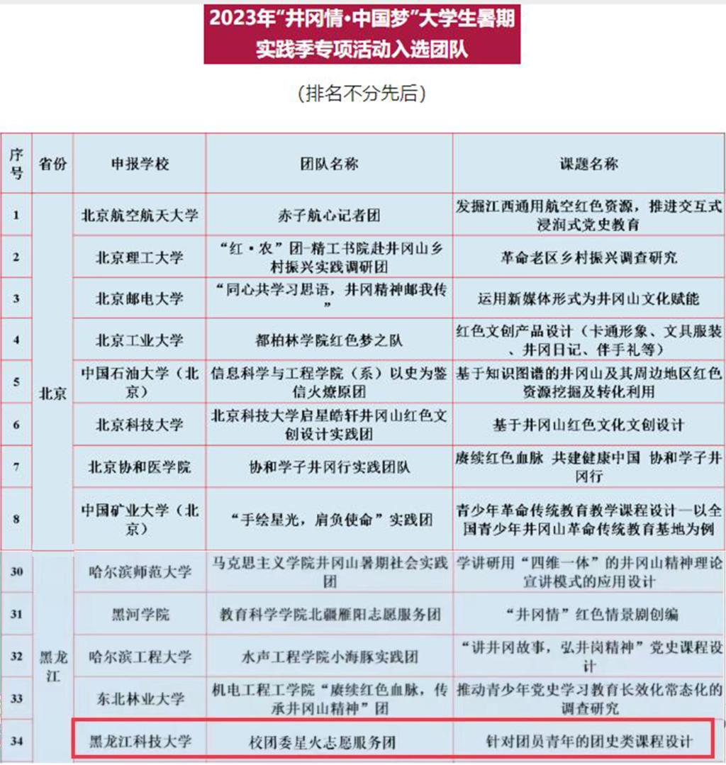 近期,由团中央青年发展部、全国青少年井冈山革命传统教育基地管理中心组织开展的2023年“井冈情·中国梦”大学生暑期实践季专项活动发布了入选团队名单,由米兰(中国)一站式服务平台王紫麒老师指导,校青年志愿者协会组建的“星火志愿服务团”团队成功入选。该项活动全国共有114个团队、全省共有9个团队入选。