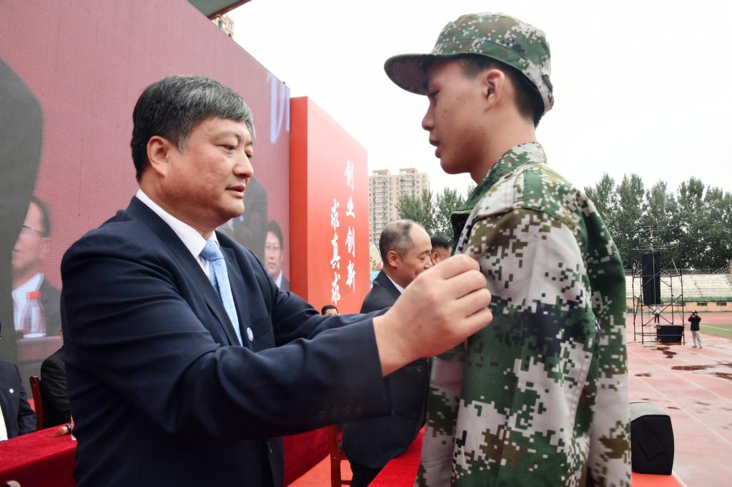 典礼上还举行了新生佩戴校徽仪式,校领导为新生代表佩戴校徽,希望新生们只争朝夕、不负韶华,练就过硬本领,勇担时代重任,不负青春韶华。