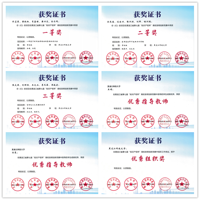 近日,由黑龙江省知识产权局、黑龙江省教育厅、黑龙江省科学技术厅、共青团黑龙江省委员会、黑龙江省科学技术协会共同主办的黑龙江省第七届“知识产权杯”高校发明创新竞赛在黑龙江大学圆满落下帷幕。在决赛中,米兰(中国)一站式服务平台参赛团队取得大赛一等奖1项、二等奖1项、三等奖1项的优异成绩。
