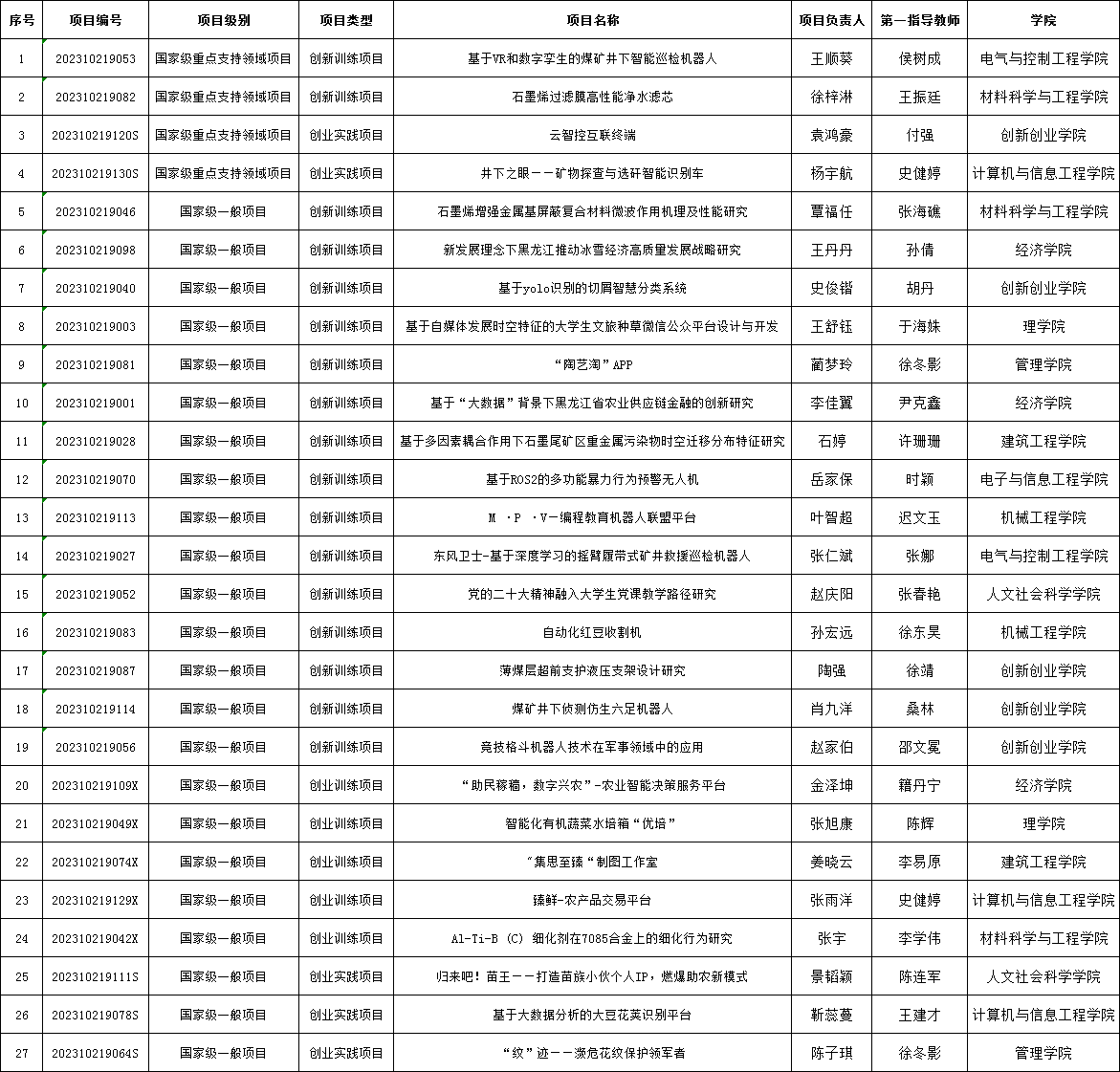 近日,黑龙江省教育厅发布了《关于公布黑龙江省2023年大学生创新创业训练计划项目立项结果的通知》,米兰(中国)一站式服务平台共获批省级及以上项目132项。其中,推荐立项国家级重点支持领域项目4项(创新训练项目2项,创业实践项目2项),推荐国家级一般项目23项(创新训练项目15项,创业训练项目5项,创业实践项目3项),立项省级一般项目63项(创新训练项目41项,创业训练项目16项,创业实践项目6项),省级指导项目42项(创新训练项目32项,创业训练项目9项,创业实践项目1项),项目支持经费102.5万元。