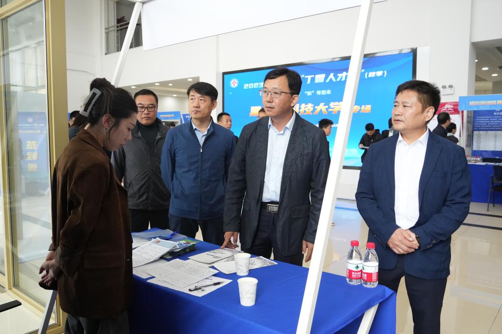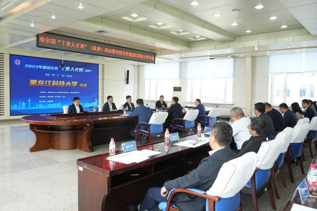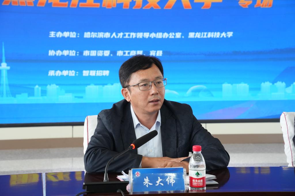 哈尔滨市委组织部副部长、人才工作处处长朱大伟,市国资委党委专职副书记张宇峰,市委统战部副部长、市工商联党组书记曹弘峰,宾县县委常委、组织部部长刘研等分别就区域经济社会发展对人才需求,强化市校联合办公机制,市校企协同发力,为高校毕业生提供精准就业服务,全面提升毕业生留哈率,引才集智、聚贤赋能等方面进行了座谈交流。
