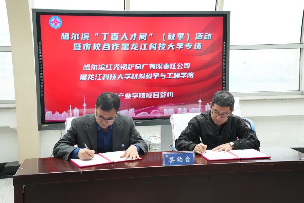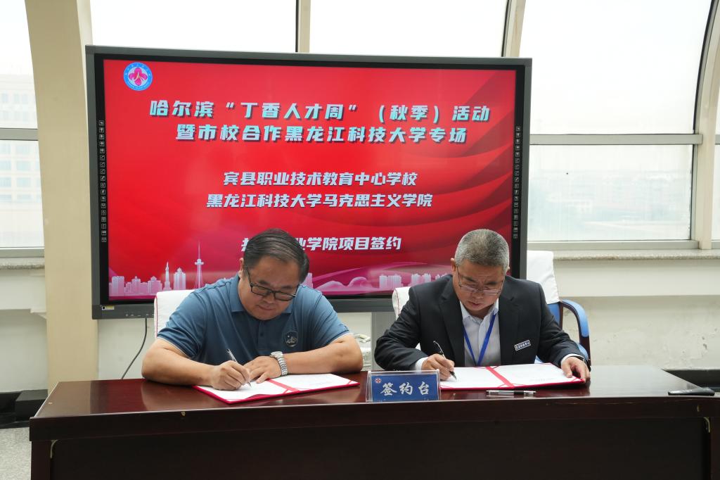 宾县职业技术教育中心学校、哈尔滨物业供热集团有限责任公司、哈尔滨红光锅炉总厂有限责任公司分别与学校相关学院签署了项目合作协议。