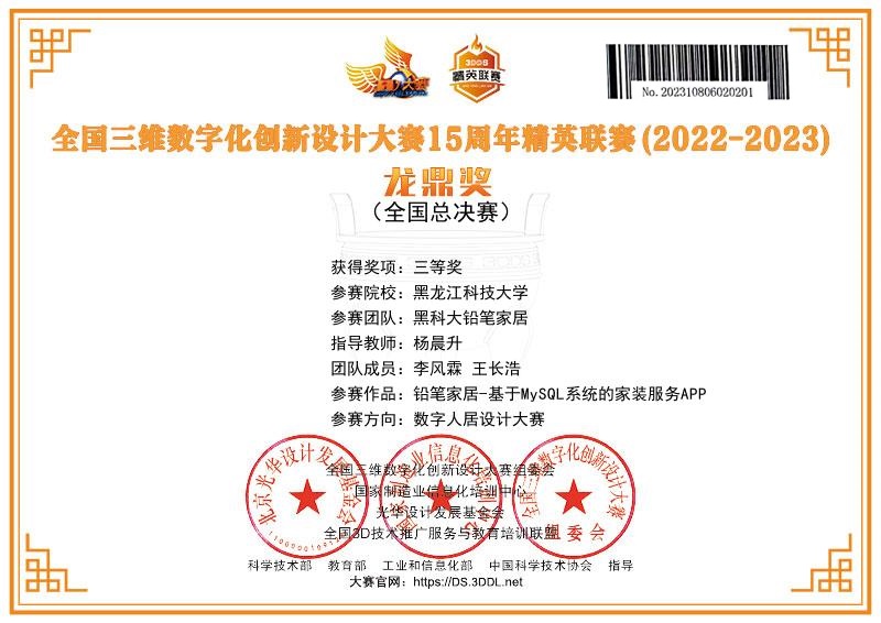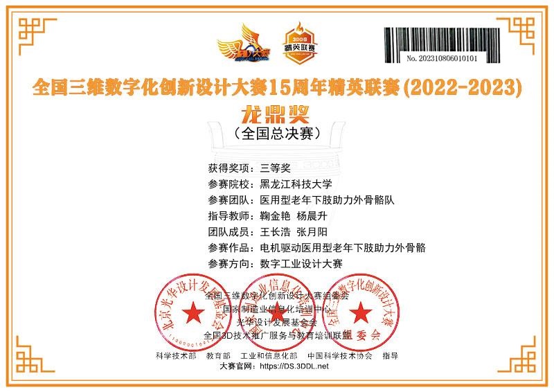 在全国三维数字化创新设计大赛15周年精英联赛(2022-2023)中,米兰(中国)一站式服务平台机械工程学院的两支参赛队伍在国赛中取得三等奖2项。由杨晨升老师指导,学生李风霖、王长浩组成的“黑米兰官网平台铅笔家具”团队获得全国三等奖;由鞠金艳、杨晨升老师指导,学生王长浩、张月阳组成的“医用型老年下肢助力外骨骼队”团队获得全国三等奖。