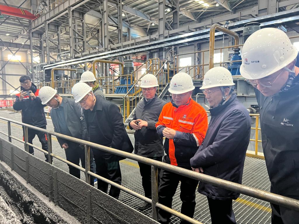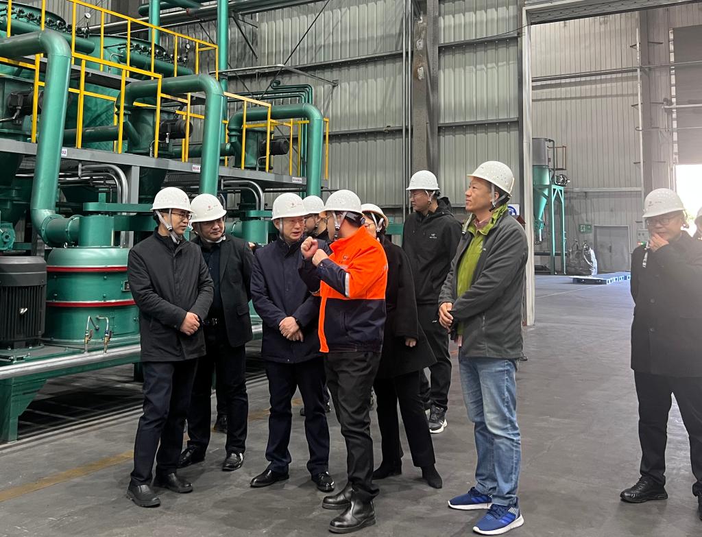 在萝北县委领导的陪同下,走访了五矿石墨、奥星石墨新材料有限公司和萝北县众泰新型环保建材制造有限公司。考察了萝北县石墨产业园区矿山开采现场、石墨选矿工艺、球形石墨生产工艺、安全调度中心、智慧矿山、石墨新材料的研发、VOCs治理、尾矿库管理及石墨尾矿综合利用等方面的工作。同行专家与一线管理人员深入探讨生产过程中所遇到的技术问题,并提出切实可行的解决方案,为后续的校县合作奠定了坚实的基础。