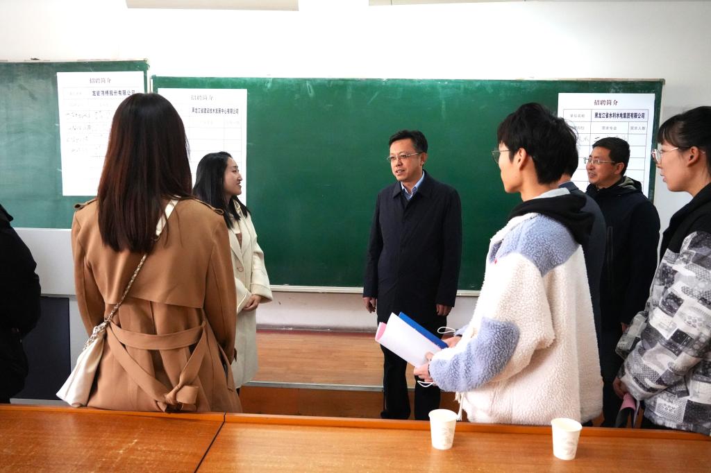 校党委书记周宏力、党委副书记桑玉军深入招聘场地,与用人单位和参会学生亲切交流,勉励毕业生抓住机会、积极就业,响应国家号召,到祖国最需要的地方建功立业。周宏力代表学校感谢用人单位长期以来对学校毕业生的认可和对就业工作的支持,并详细了解用人单位的基本情况、用人需求、学生求职情况以及用人单位对米兰(中国)一站式服务平台人才培养、学科建设、就业服务等方面的意见建议。