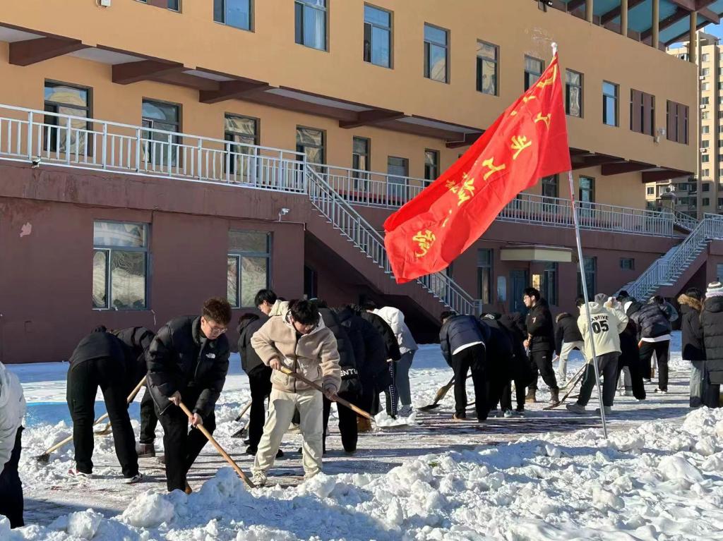 活动现场,校院两级团学组织骨干打着旗帜、喊着口号、精神饱满、斗志昂扬,不断挥舞着铁锹和扫帚,你扫我铲,成为皑皑白雪中一道靓丽的风景。学生会组织负责人在活动现场不时动员全体骨干要切实将服务同学,为同学做实事作为开展学生会工作,赢得学生认可和信赖的重要抓手和工作主线;大学生仪仗队、青年传媒中心、学生社团等各级学生组织团支部书记表示,将功能性团支部的主题团日开在服务同学的现场是一次新的体验,为下一步功能性团支部建设积累了宝贵经验。