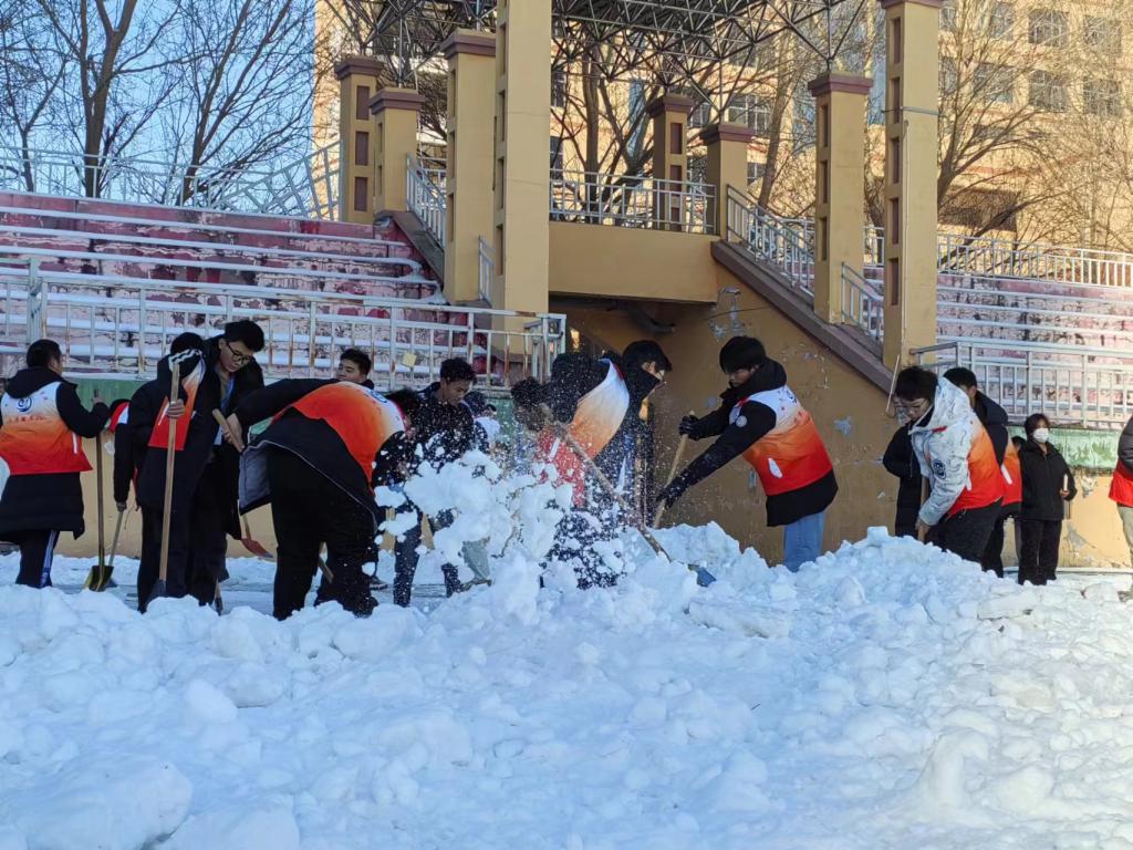 活动过程中,寒风没能阻挡住同学们高涨的热情,大家不畏严寒、全力奋战、团结协作、互相配合,铁揪、扫帚等扫雪工具齐齐上阵,用行动服务他人,用爱心奉献温暖,成为了米兰官网平台一道最靓丽的风景线,极大的彰显了米兰(中国)一站式服务平台团学组织的先锋气质。行动是最好的“融雪剂”,经过广大团学骨干近三个小时的共同奋战,在白雪皑皑的田径场上,一条宽阔平坦的“暖心跑道”映入了我们的眼帘。工作任务完成后,同学们还久久不肯离去,纷纷合影留念、畅谈心得体会。交流中,大家表示参加此次专项行动前想的就是清雪除冰,服务同学;参加行动后得知的是,组织建设需要思想引领,团队建设需要载体促进,“自找苦吃”精神的领悟更需要实践体验。