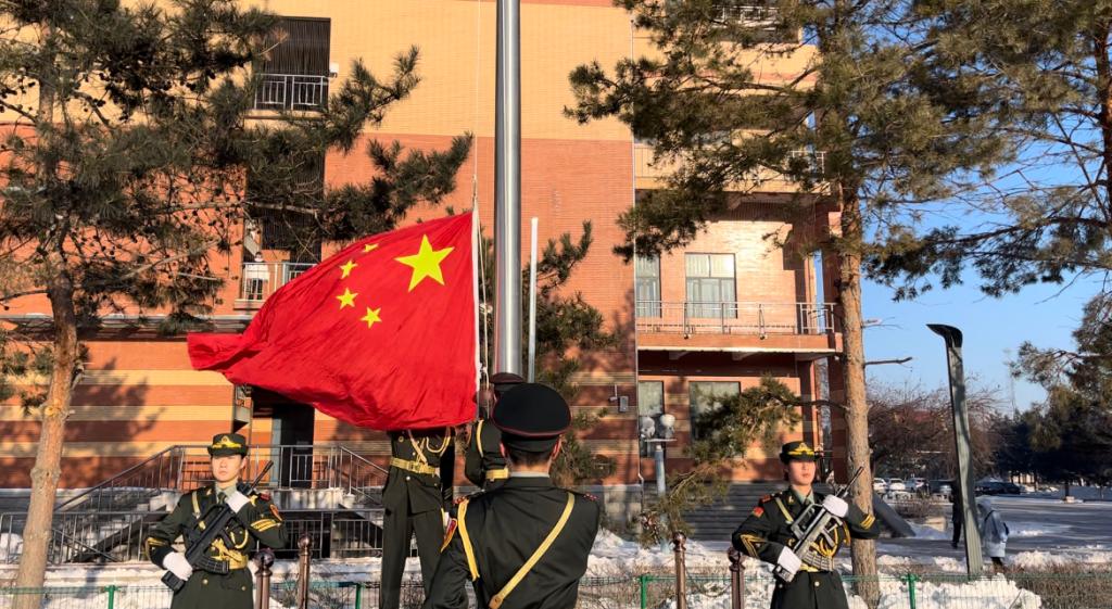 全体师生满怀对祖国的热爱和对宪法的敬畏,以奋进的姿态,齐聚广场。升旗仪式上,伴随着激昂的《义勇军进行曲》,神圣的国旗冉冉升起,国旗护卫队队员目光坚定,神情庄重,全体师生向国旗行注目礼,齐声高唱,雄壮嘹亮的国歌声唱彻米兰官网平台上空。