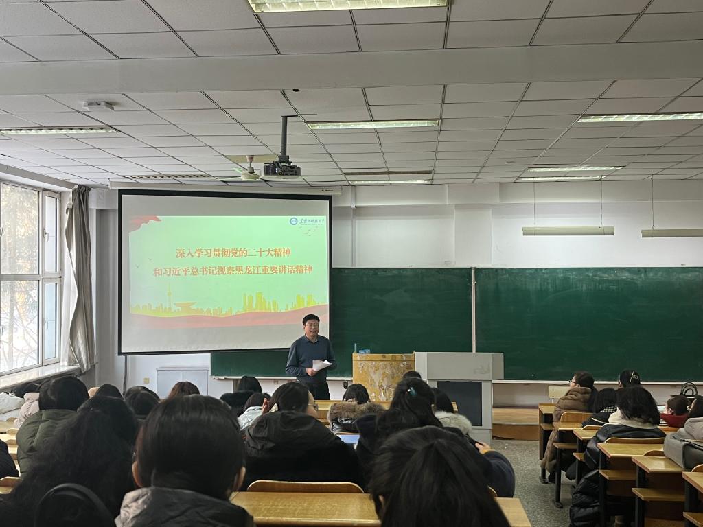 12月14日,研究生学院开展学习贯彻党的二十大精神和习近平总书记视察黑龙江重要讲话精神宣讲。党委书记王维杰从“要牢牢把握在国家发展大局中的战略定位,奋力开创黑龙江高质量发展新局面”、“要以科技创新引领产业全面振兴,加快形成新质生产力”等七个方面诠释了习近平总书记视察黑龙江重要讲话核心要义。