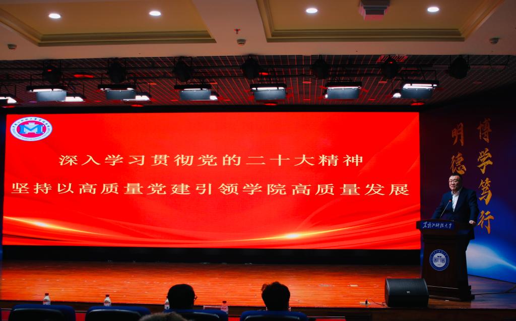 12月20日,管理学院在朝阳楼0131会议室,召开学习贯彻党的二十大精神和习近平总书记视察黑龙江重要讲话精神宣讲会,学院党委书记何景洋进行专题宣讲,全体教职工参加会议。会上,何景洋重点从习近平总书记视察黑龙江重要讲话核心要义的七个方面等进行了深刻阐释,号召全体教职工要始终牢记总书记的嘱托,深入学习贯彻党的二十大精神,坚持以高质量党建引领学院高质量发展。