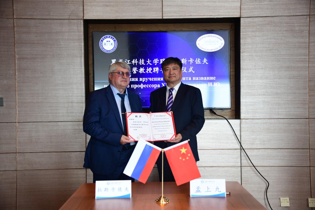 10月20日上午,校长孟上九、副校长陈凯云会见了俄罗斯阿穆尔河畔共青城国立大学校长德米特里耶夫,共同签署了“关于建立国际合作联合实验室的协议”。
