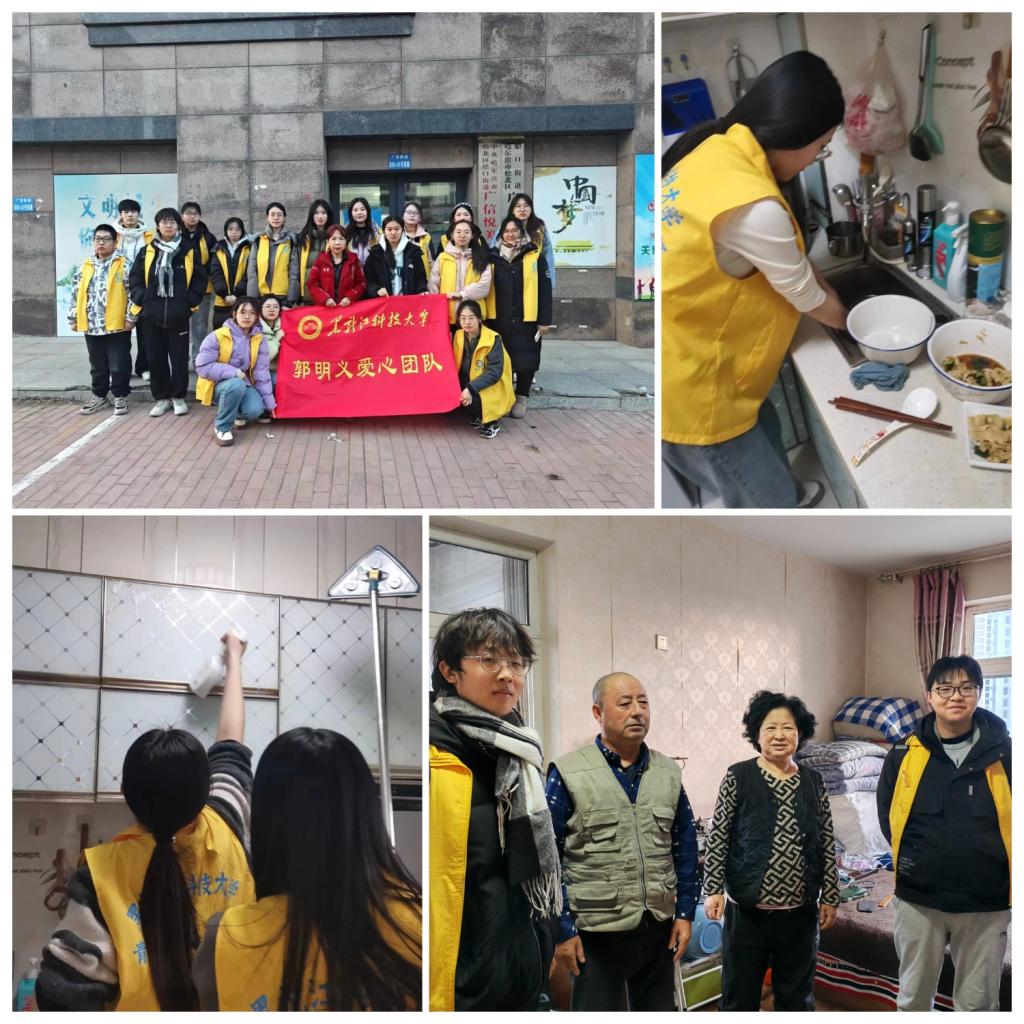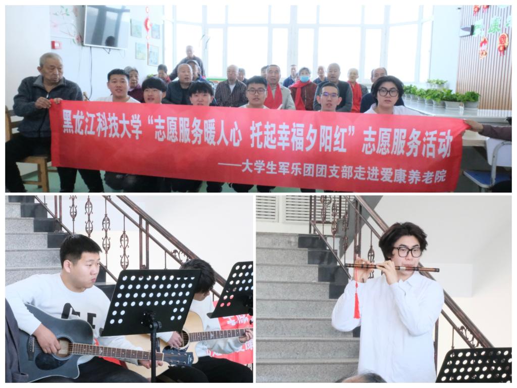 青年志愿者协会郭明义爱心团队团支部走进广信悦美社区的空巢老人家中,为老人打扫房间、送去温暖;大学生凤凰鸟艺术团团支部联合大学生合唱团团支部赴松浦街道常盛源社区,开展了“情暖常盛源、浓情志愿行”志愿服务活动,同学们为社区居民表演了独舞《乌兰巴托的夜》、吉他弹唱《稻香》、相声《文玩》、爱国歌曲《共筑中国梦》《唱支山歌给党听》等节目,赢得了广大居民的阵阵掌声;大学生军乐团赴爱康养老院开展了“志愿服务暖人心 托起幸福夕阳红”志愿服务活动,进行了单簧管、竹笛、二胡等乐器表演,为敬老院增添了喜乐与祥和。