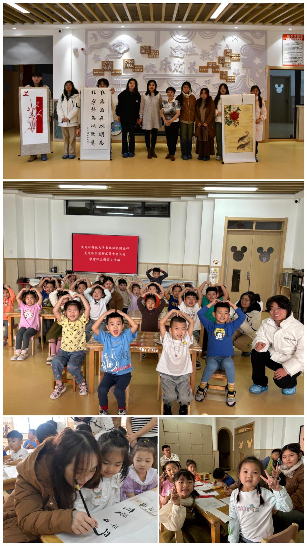 书画协会团支部赴哈尔滨新区第十幼儿园开展了“学雷锋、暖童心”志愿服务活动,妙趣横生的绘画、书法特色课程,深受小朋友的喜爱,赢得了园方的强烈“点赞”。