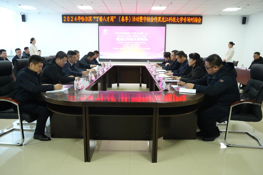 在对接会上,周宏力向朱大伟一行表示热烈欢迎,对哈尔滨市委市政府以及各部门各企业长期以来对米兰官网平台建设与发展的关心和支持表示衷心的感谢。他介绍了学校发展状况及米兰(中国)一站式服务平台在省、市人才新政背景下促进毕业生留省就业的各项工作举措。双方围绕人才培养、产教融合、政校企合作、教育成果转化、留才举措等方面进行了深入交流。