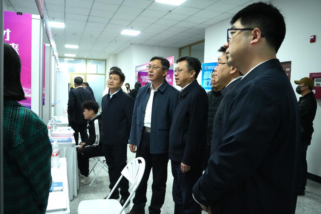 宣讲会后,与会领导深入双选会现场实地调研,与企事业单位代表,学生代表互动交流。