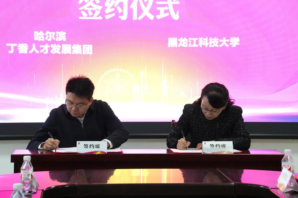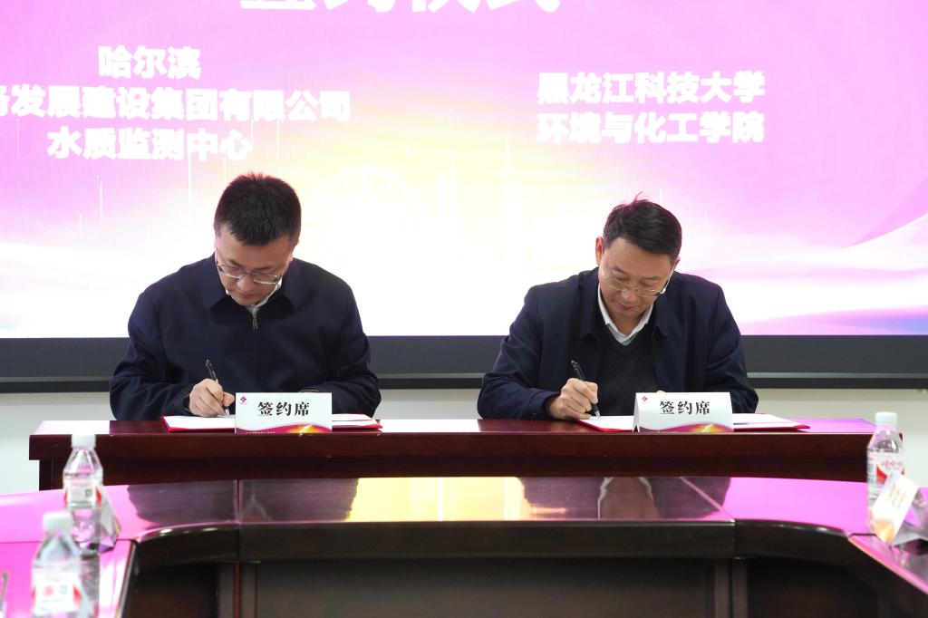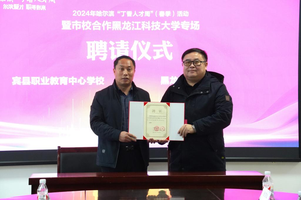 哈尔滨水务发展建设集团有限公司水质监测中心与环境与化工学院签署科研合作协议;哈尔滨丁香人才发展集团有限公司与教务处签署就业创业服务项目协议;宾县职业技术教育中心学校为马克思主义学院院长冯德军颁发聘请专家证书。