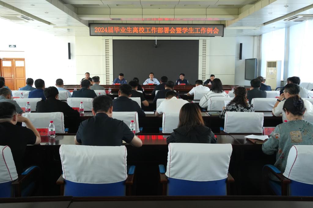 会上,学生处、校团委、招生就业处分别部署了2024届毕业生离校工作、毕业生文明离校主题教育活动、毕业生就业工作、毕业季校园系列文化活动、毕业季校园政治安全等重点工作。围绕毕业生离校工作,明确了各工作组、学工委各成员单位、各学院的责任和任务分工、日程安排和工作要求。