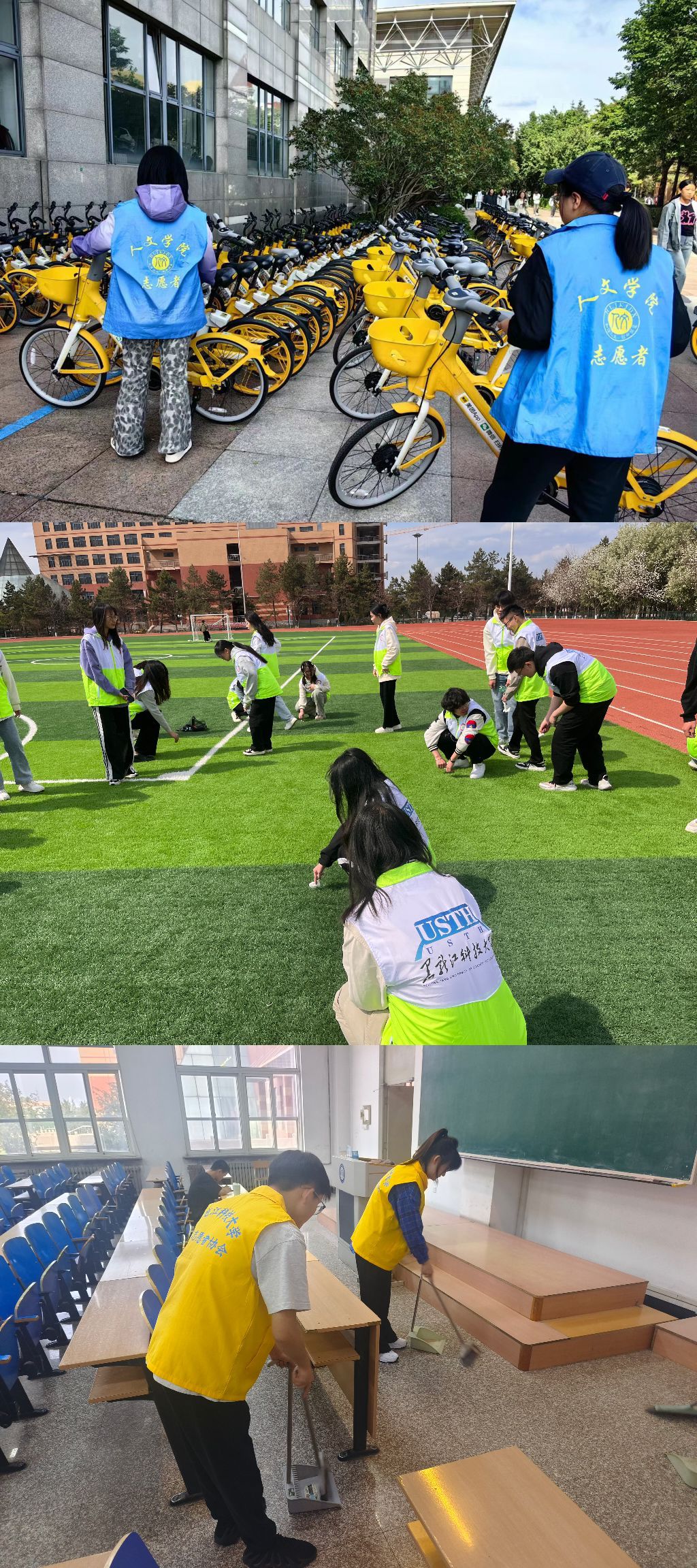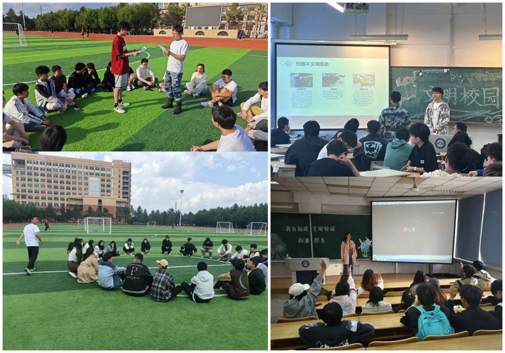躬身实践,让青年学生在实际体验中强化责任担当。人文学院团委开展了“停驻文明,与爱同行”共享单车文明摆放活动;校学生会团支部对田径场、体育文化休闲广场的垃圾进行了清理;校青年志愿者协会团支部对教室进行了清扫,各学院团委组织青年学生对评选出的校园十大不文明行为进行了全面梳理、学习、反思、总结,撰写心得感悟80余篇,将爱校荣校的热情转化为实际行动,为创建校园文明贡献力量。