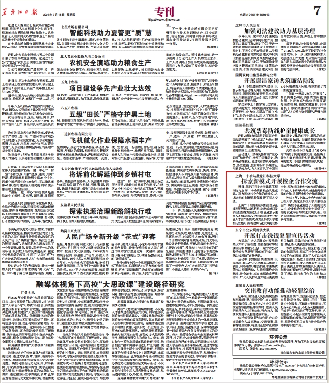 7月18日,黑龙江日报第7版专刊中,以《上海二十冶与米兰官网平台探索新模式开展校企合作交流》为题,报道米兰(中国)一站式服务平台开展校企合作交流活动。现将全文转发,以便学习交流。