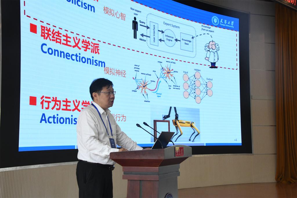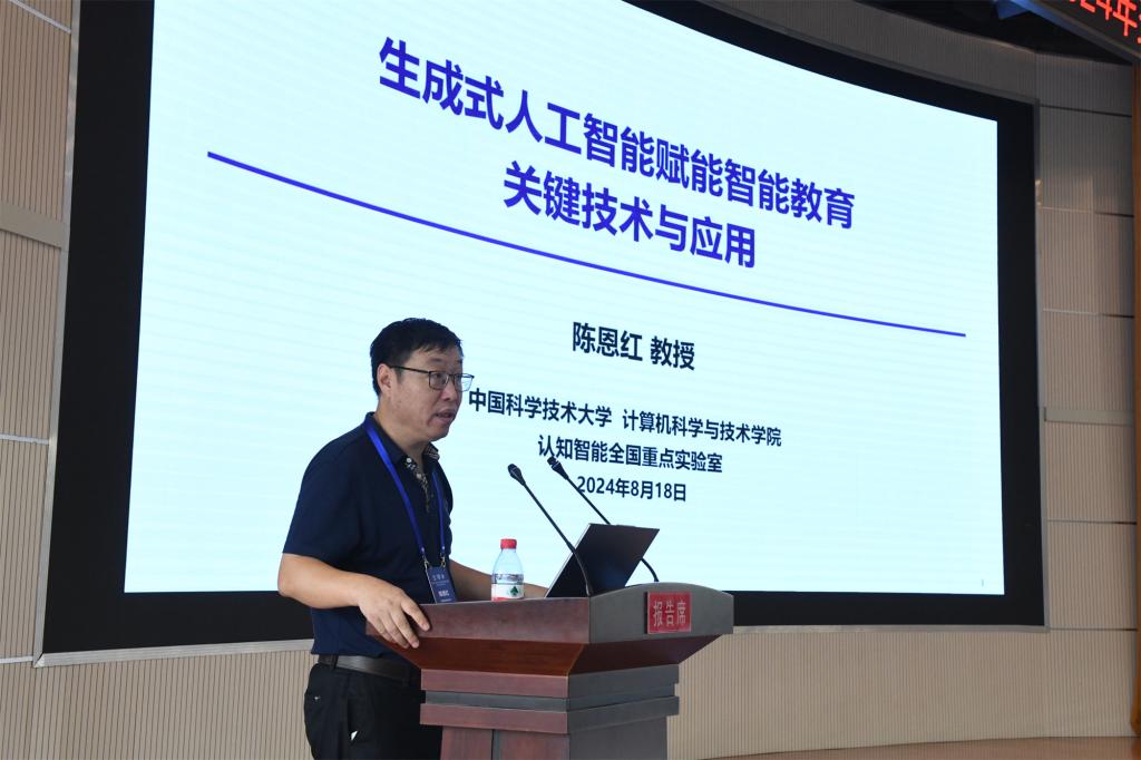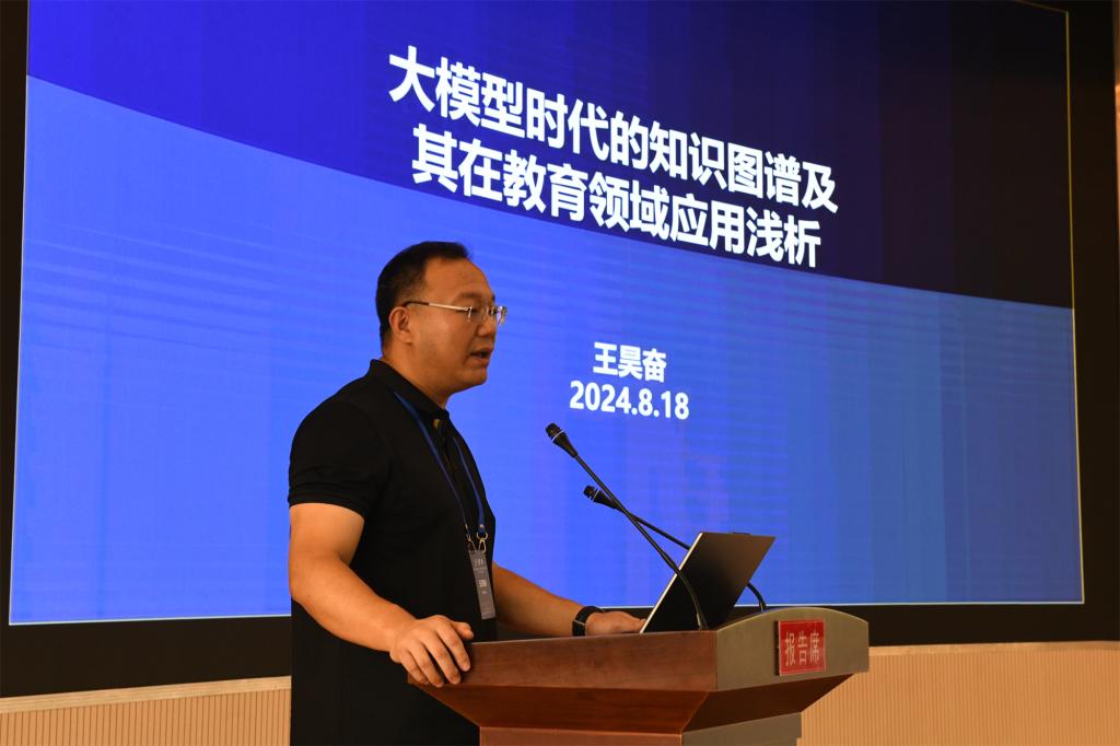 开幕式后,中国科学技术大学讲席教授、认知智能全国重点实验室副主任陈恩红,教育部重点领域知识工程课程群虚拟教研室带头人、天津大学人工智能学院副院长王鑫,东北大学教授、中文信息学会语言与知识计算专业委员会委员任飞亮,米兰(中国)一站式服务平台计算机与信息工程学院教授、认知智能研究所负责人刘兴丽,同济大学特聘研究员、全球最大中文开放知识图谱联盟OpenKG发起人之一王昊奋分别进行主旨报告,共同探讨新一代知识工程如何赋能课程教学资源建设。