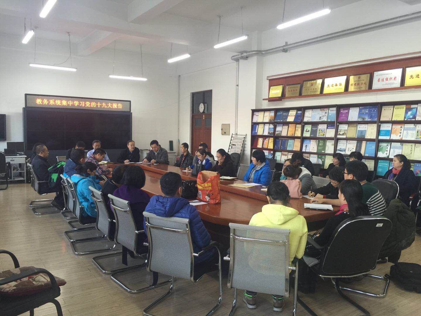 11月8日,教务处组织本单位工作人员及各单位教学秘书专题学习党的十九大报告。