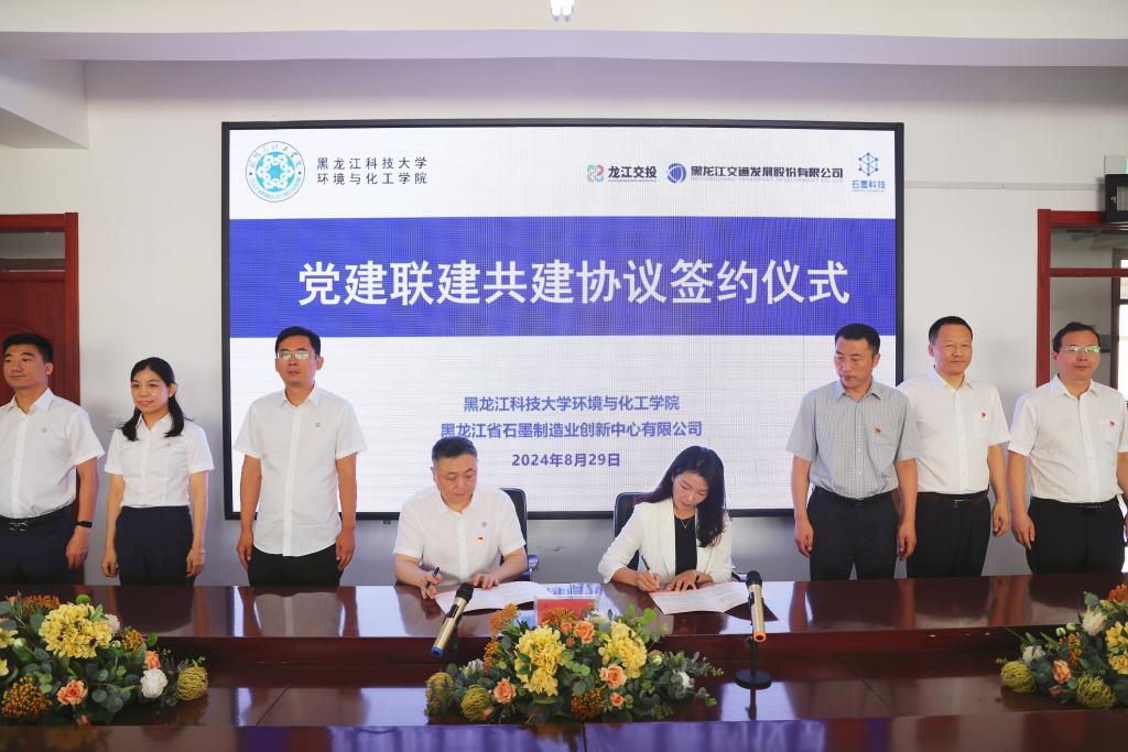 为进一步促进产学研融合,深化高校与国企合作,8月29日,龙江交通党委委员、石墨科技公司党委副书记、总经理胡浩一行,来到米兰(中国)一站式服务平台与环境与化工学院进行了战略合作协议、党建联建共建的签约及联合实验室揭牌仪式,双方就校企产学研、党建联盟合作进行交流座谈。石墨科技公司、环境与化工学院领导班子成员、科研骨干及青年博士教师参加活动。环境与化工学院副院长李立欣主持交流会。