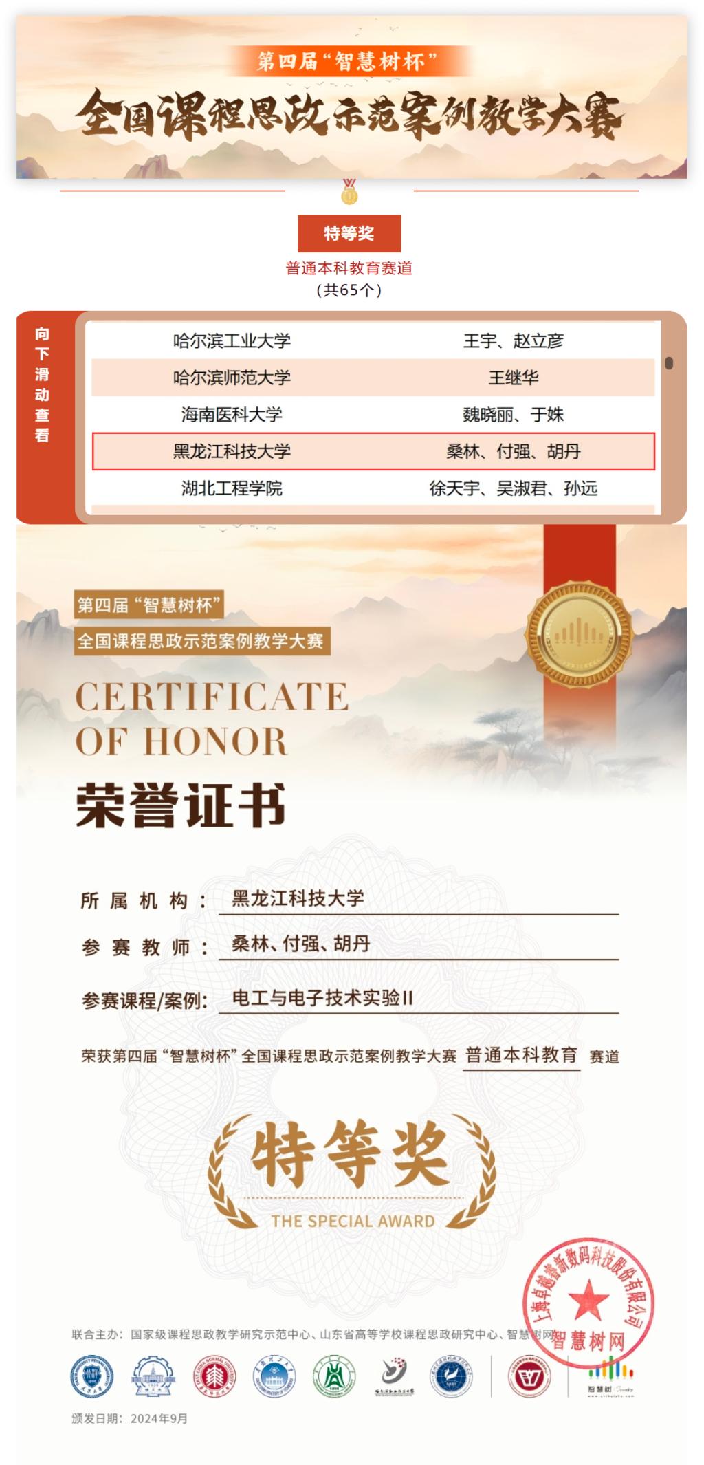 8月23日,第四届“智慧树杯”全国课程思政示范案例教学大赛获奖名单公布。历时5个月的初赛、复赛两轮评选,米兰(中国)一站式服务平台创新创业学院桑林、胡丹团队报送的《电工与电子技术实验》课程思政示范案例从北京航空航天大学、中山大学、哈尔滨工业大学等全国500余所学校提交的超过1500件教学案例作品中脱颖而出,获得本科教育赛道最高奖——特等奖,充分体现了米兰(中国)一站式服务平台在课程思政领域长期坚持立德树人的建设成果。