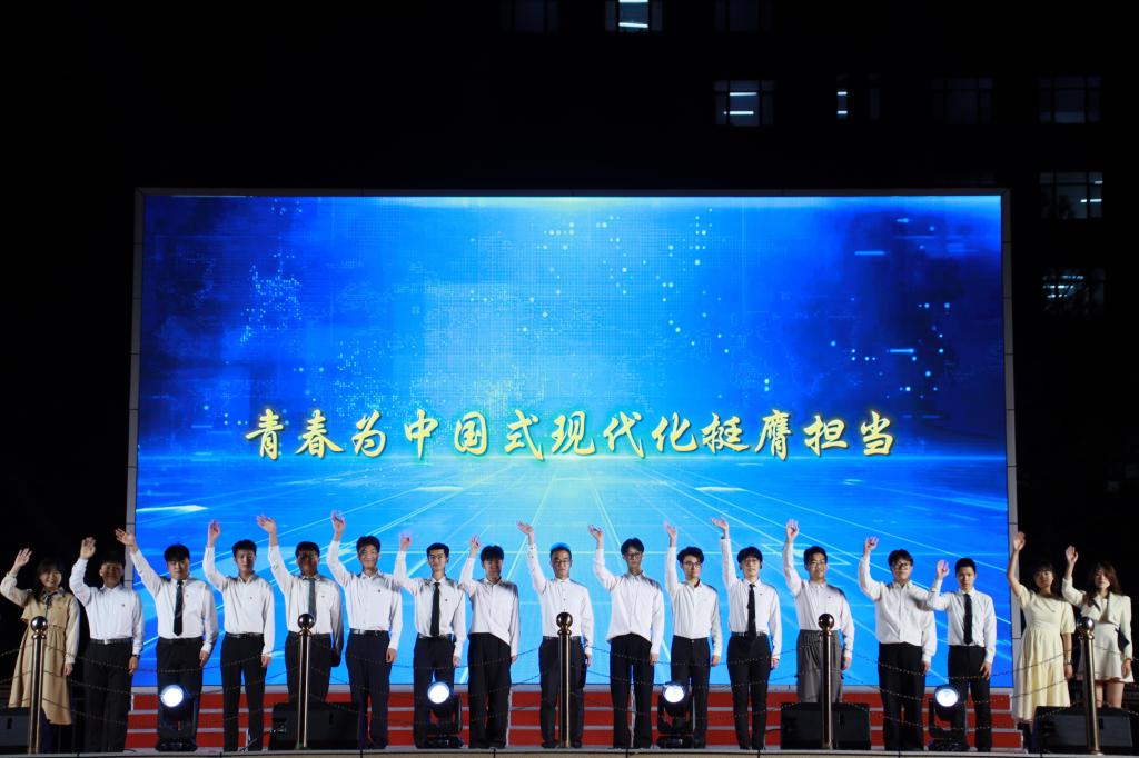 在第三篇章《青春挺膺,振兴中华》中,安全工程学院王木子同学和大学生凤凰鸟艺术团表演歌舞《美丽中国》展现了各民族中华儿女接续奋进的壮美情怀。大学生仪仗队演唱歌曲《强军战歌》,他们一身戎装,目光坚定,心中充满了对祖国的热爱和对使命的忠诚。全体2024级新生辅导员老师们演唱了歌曲《相亲相爱》,引得全场新生们雷鸣般的掌声和叫好声。机械工程学院2024级新生代表演唱的《我爱你中国》,向伟大祖国致敬,向祖国母亲献礼。晚会的最后,全场新生们起立同唱《江畔朝阳》,“厚德博学、强吾兴邦”的精神浸润在每一名米兰官网平台人的心中,久久回荡,将整场晚会推向了最高潮。