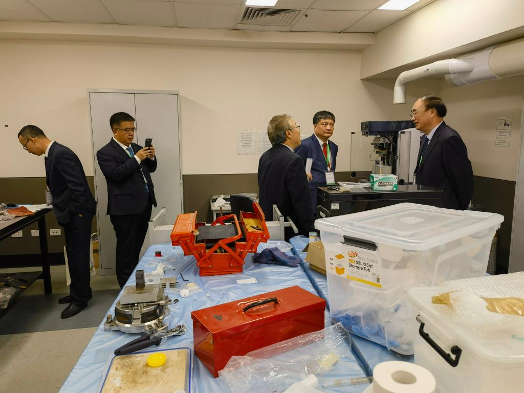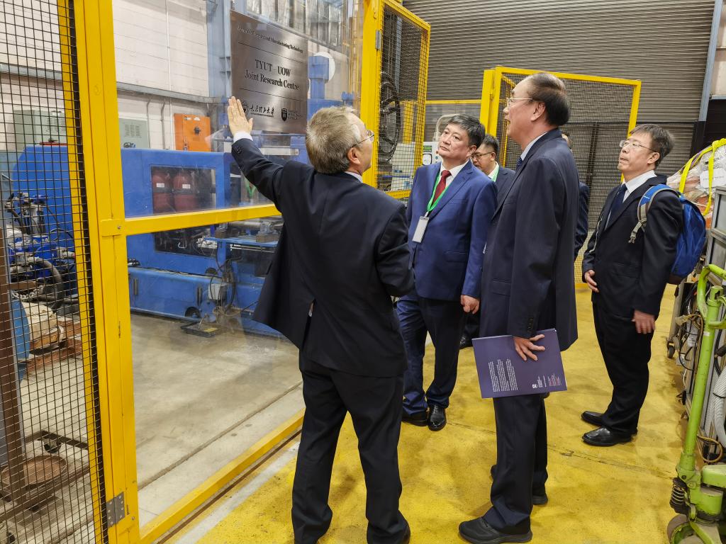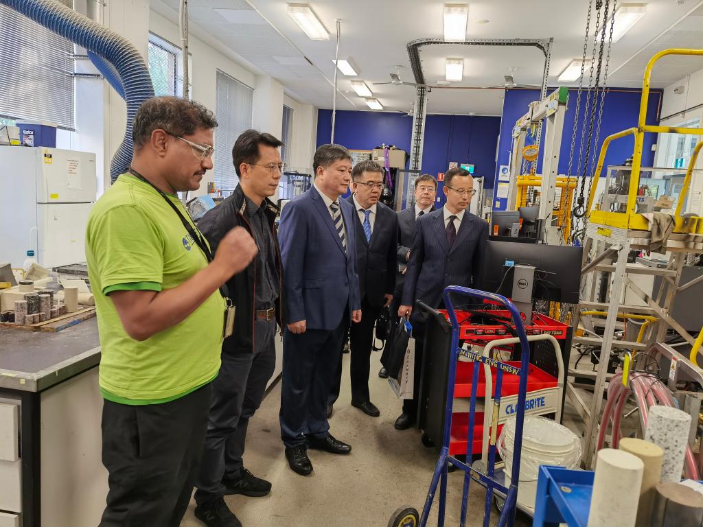 代表团在伍伦贡大学的访问期间,与澳大利亚研究委员会(ARC)可持续采矿设备未来创新复合材料培训中心主任姜正义教授、副主任任廷祥教授,伍伦贡大学国际合作与战略伙伴关系部经理莉莉·安,伍伦贡大学采矿学院院长费萨尔·海教授以及咨询委员会委员等进行了深入交流,双方在2023年已达成的关于青年教师访学、国际合作项目申报、共建国际合作联合实验室及研究生培养等合作意向基础上,细化了具体的合作路径与实施办法。会后参观了该校创新制造、智能制造、摩擦学等实验室。