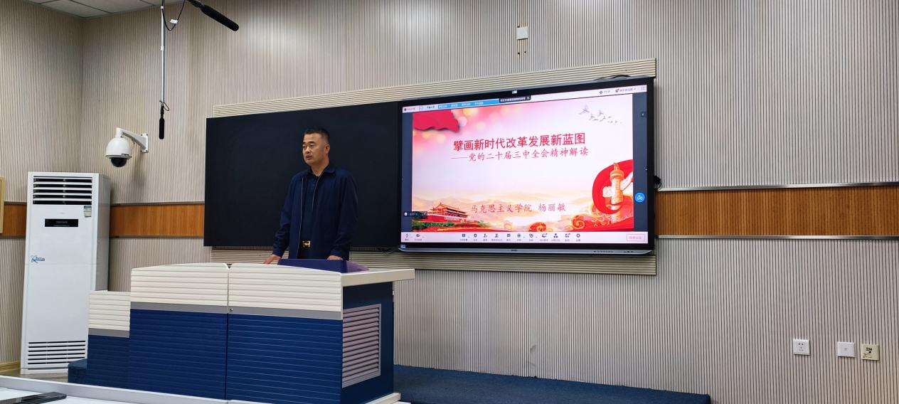 10月23日,理学院开展了深入学习贯彻党的二十届三中全会精神宣讲会,邀请校宣讲团成员、马克思主义学院党委书记张影为全体教职工对全会精神进行解读。张影围绕党的二十届三中全会的主要成果,从党的二十届三中全会的重大意义,进一步全面深化改革、推进中国式现代化的总体要求,进一步全面深化改革、推进中国式现代化的重大原则,进一步全面深化改革、推进中国式现代化的重大举措等方面,对党的二十届三中全会精神进行了全方位、深层次解读。