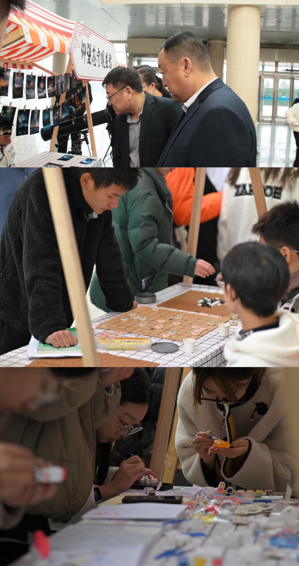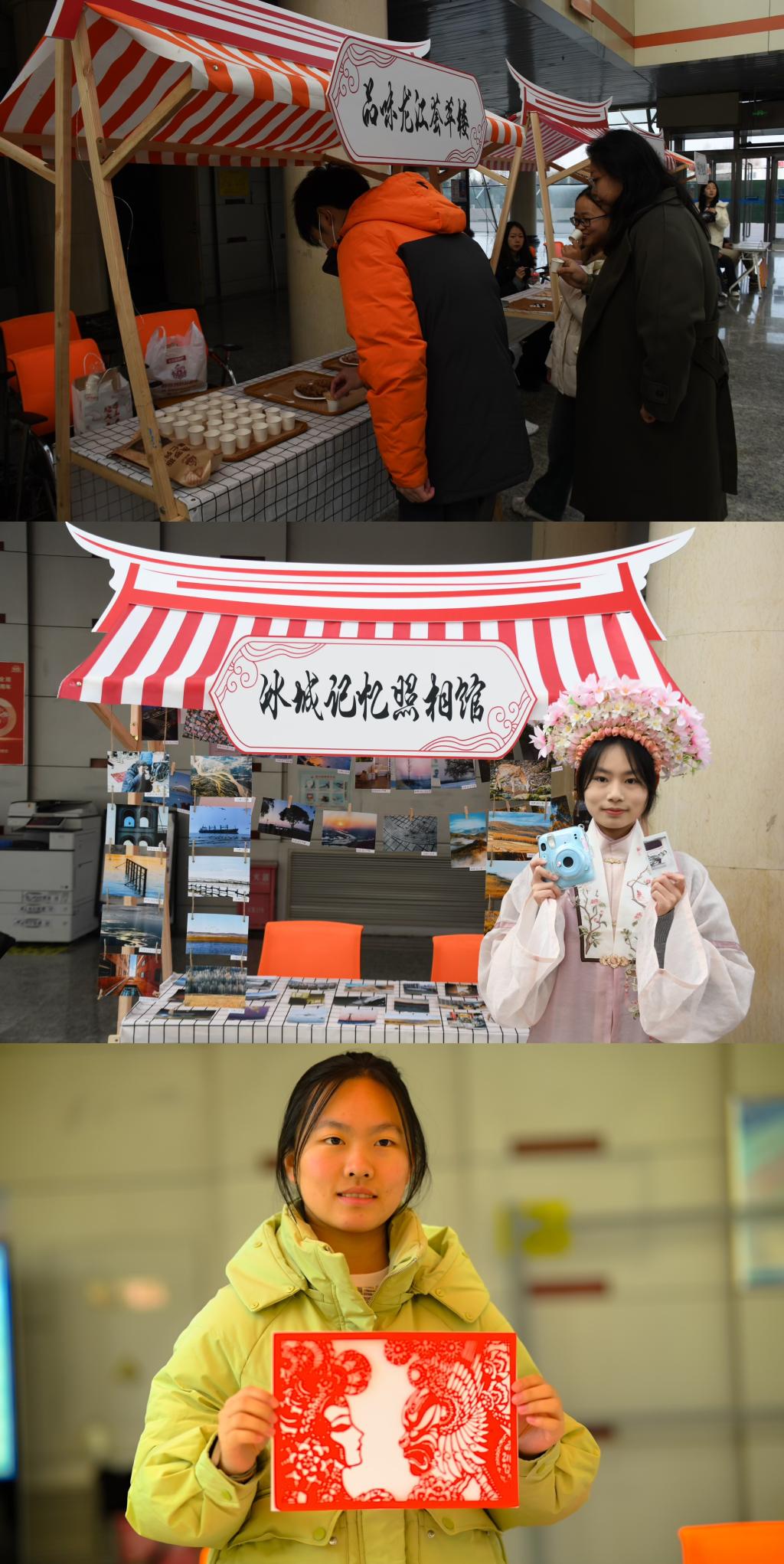 巡礼月开幕式现场采用“特色演出+国风创意集市”的形式,华夏重光汉服社和大学生武术协会进行了现场表演,各学生社团的集市摊位设计别出心裁、华夏重光司衣坊的“汉服DIY体验”、集贤书院的“写意团扇”、翰林画院的“彩绘”、剪影艺馆的“剪纸”、棋韵致远博弈社的“黑白对决”……同学们还能在品味龙江荟萃楼里品尝到大列巴、红肠等哈尔滨特色美食,活动现场热闹非凡,欢声笑语不断。