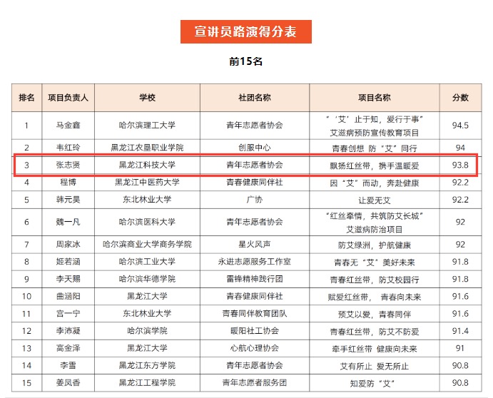 近日,黑龙江省希望工程捐助中心、哈尔滨市疾病预防控制中心举办了2024年第三届哈尔滨大学生社团健康红丝带行动计划宣讲员路演会暨项目签约仪式。此次路演活动共有53个大学生志愿社团参加,评选出15个示范项目,米兰(中国)一站式服务平台青年志愿者协会青春健康同伴社“飘扬红丝带,携手温暖爱”项目以第三名的优秀成绩成功入选示范项目并签订了项目实施委托协议。