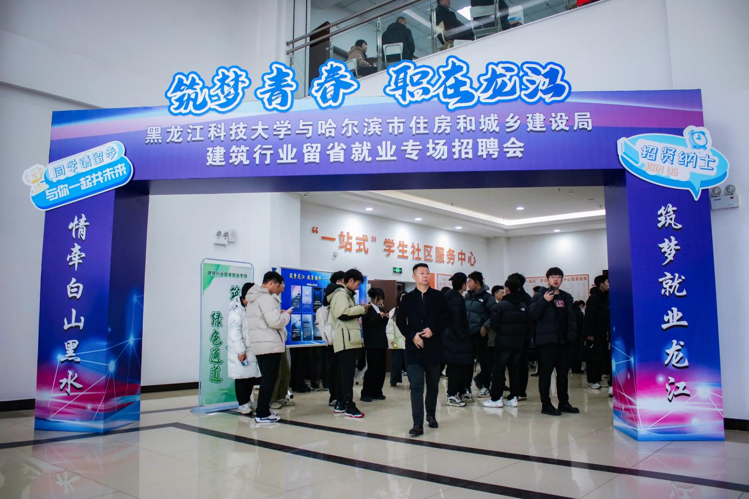 启动仪式后进行“筑梦青春职在龙江”建筑行业留省就业专场招聘会,本次招聘会系学校系列招聘活动之一,招聘会由108家省内建筑行业企业参与招聘活动招揽人才,累计提供就业岗位767个,参与招聘活动的学生超过400余人。