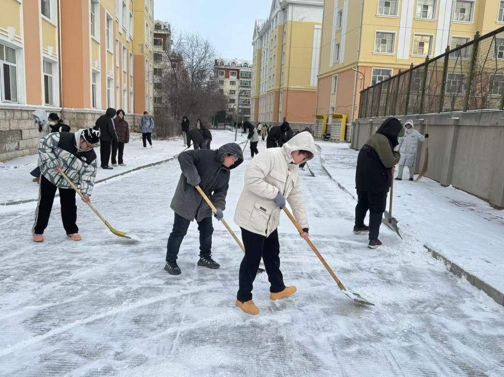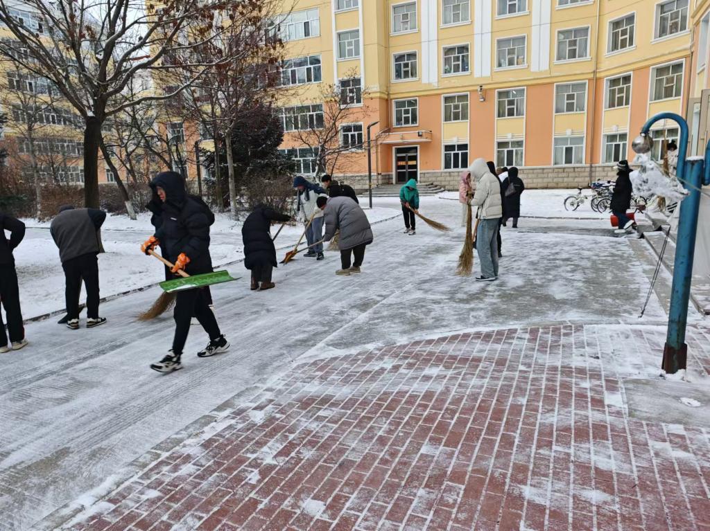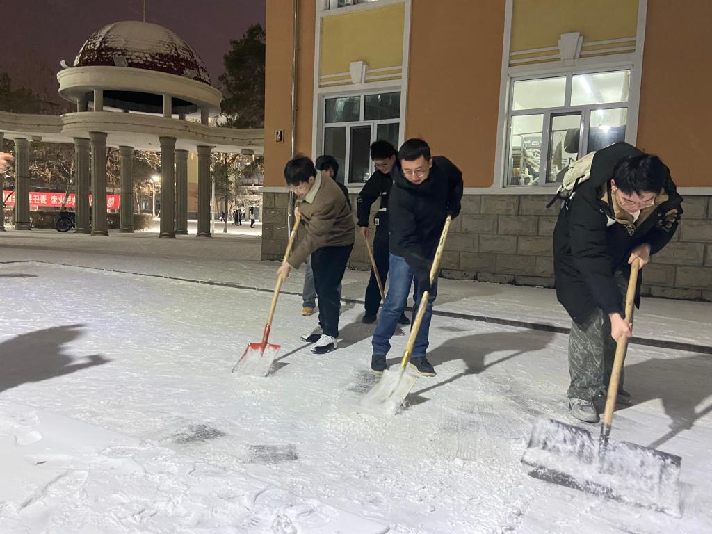 米兰官网平台师生齐上阵,扫雪除冰换新颜。各学院辅导员带领学生“闻雪而动”,遇“雪”奋战,即使头发和睫毛已经结满了霜,即使双手和脸颊已经被冻的通红,依然执铁锹作笔,以大地为幕,你铲我推,你扫我收,高质量完成了扫雪任务,用勤劳和奉献谱写了校园最美丽的风景,用最朴实的行动诠释着当代大学生的责任和担当,为师生出行安全提供了坚实的保障。