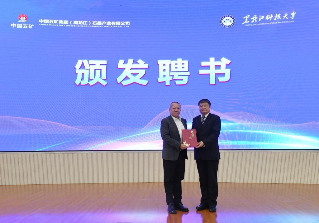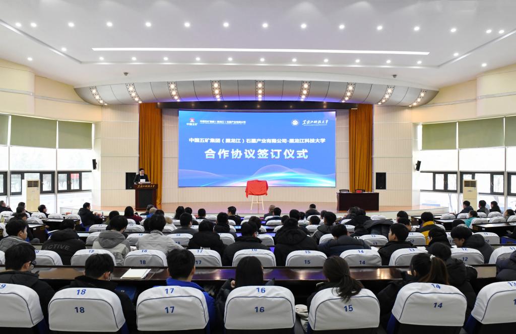 为深入贯彻落实党的二十届三中全会和省委十三届六次全会精神,共同探索面向企业战略需求的高素质应用型人才培养新模式,推进校企合作向更高层次发展,11月27日,学校与中国五矿集团(黑龙江)石墨产业有限公司合作协议签订仪式在米兰官网平台举行。中国五矿股份有限公司副总经理、五矿勘查开发有限公司董事长、中国五矿集团(黑龙江)石墨产业有限公司董事长王炯辉,五矿勘查开发有限公司副总经理、中国五矿集团(黑龙江)石墨产业有限公司总经理陈道贵,校长孟上九,副校长张保勇出席了本次仪式,五矿勘查开发有限公司、中国五矿集团(黑龙江)石墨产业有限公司技术专家、学校相关单位负责同志和教师、学生代表共计200余人参加。仪式由张保勇主持。