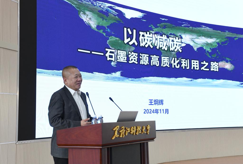 仪式结束后,王炯辉以《以碳减碳——石墨资源高质化利用》为题作了精彩的学术报告。
