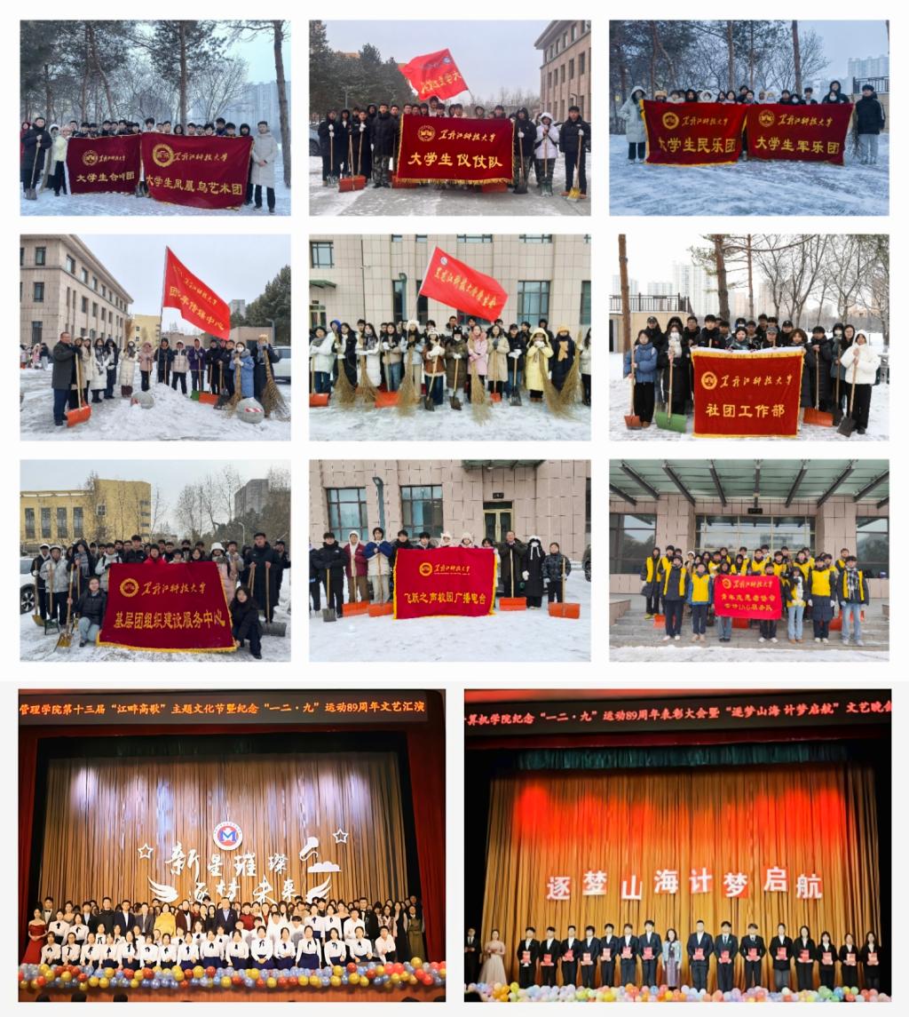 选树榜样立标杆,示范引领育新风。校级学生组织秉承全心全意服务同学的宗旨,扎实开展了“共筑冬日暖阳,彰显青春担当”清雪除冰志愿服务等“我为同学做实事”活动,为同学解决出行难题,用实际行动彰显了米兰官网平台青年的责任与担当。校学生会、研究生会在全校范围内组织开展了“优秀学生分会”“优秀班集体”“优秀学生会工作人员”等先进集体和先进个人评选活动。计算机学院团委召开纪念“一二·九”运动89周年先优评选表彰大会暨“逐梦山海,计梦启航”文艺晚会;管理学院团委召开“铭记一二·九,青春绽光彩”纪念“一二·九”运动89周年暨先优表彰大会;外国语学院团委召开纪念“一二·九”运动89周年文艺汇演暨先优表彰大会。实践活动的广泛开展和先优的评选表彰充分彰显了各级团学组织的先锋气质,发挥了学生骨干的典型示范作用。