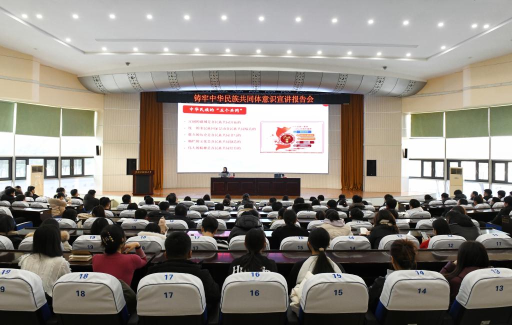 本次宣讲报告会是学校“江畔同心”统一战线工作品牌的重要内容之一,营造了民族团结一家亲的良好氛围。长期以来,学校党委高度重视校园民族工作,将铸牢中华民族共同体意识融入教育教学全过程,引导广大师生坚定对伟大祖国、中华民族、中华文化、中国共产党、中国特色社会主义的认同,牢固树立休戚与共、荣辱与共、生死与共、命运与共的共同体理念,促进各民族师生交往交流交融,奋力书写学校民族团结进步工作新篇章。