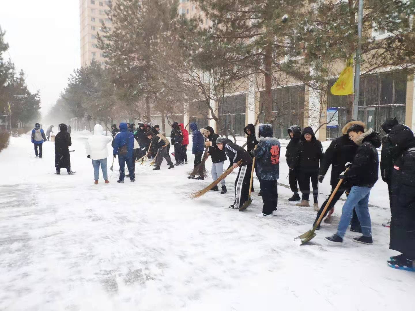 11月19日凌晨,暴风雪来袭,哈尔滨主城区降雪量达30毫米以上,是多年来少有的降雪量。全校学生从11月19日清晨开始打响迎战暴风雪“战役”,两万余名学生顶风冒雪、不畏严寒,利用早、中、晚时段高质量、高标准、高效率完成分担区清雪工作,确保校园交通顺畅和师生正常出行。