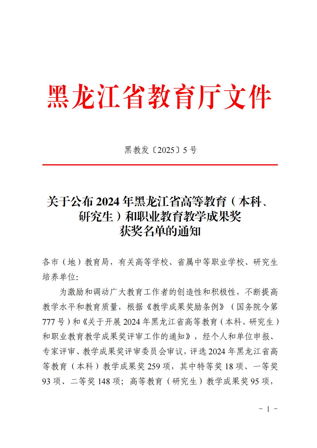 矿业学院肖福坤教授主持完成的《以现代产业学院为载体——多维融合的采矿工程专业实践能力培养模式研究与实践》、建筑工程学院孟丽岩教授主持完成的《工程教育认证背景下土木工程专业学生创新与实践能力培养的探索与实践》获得黑龙江省高等教育教学成果一等奖。